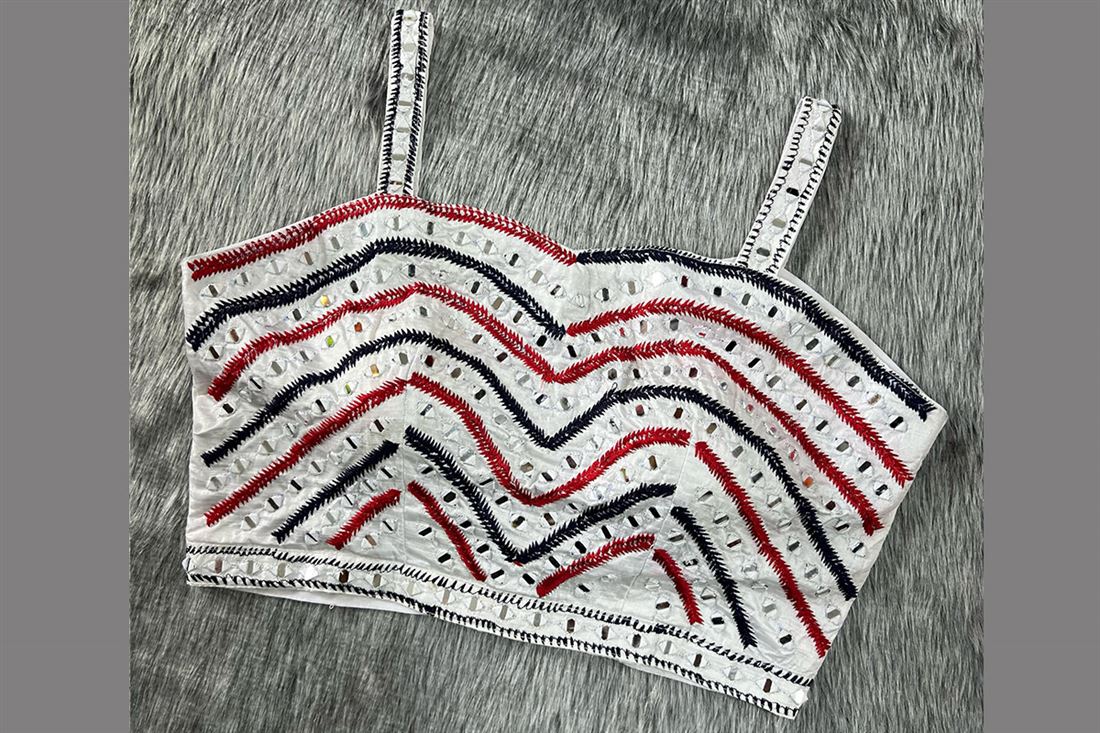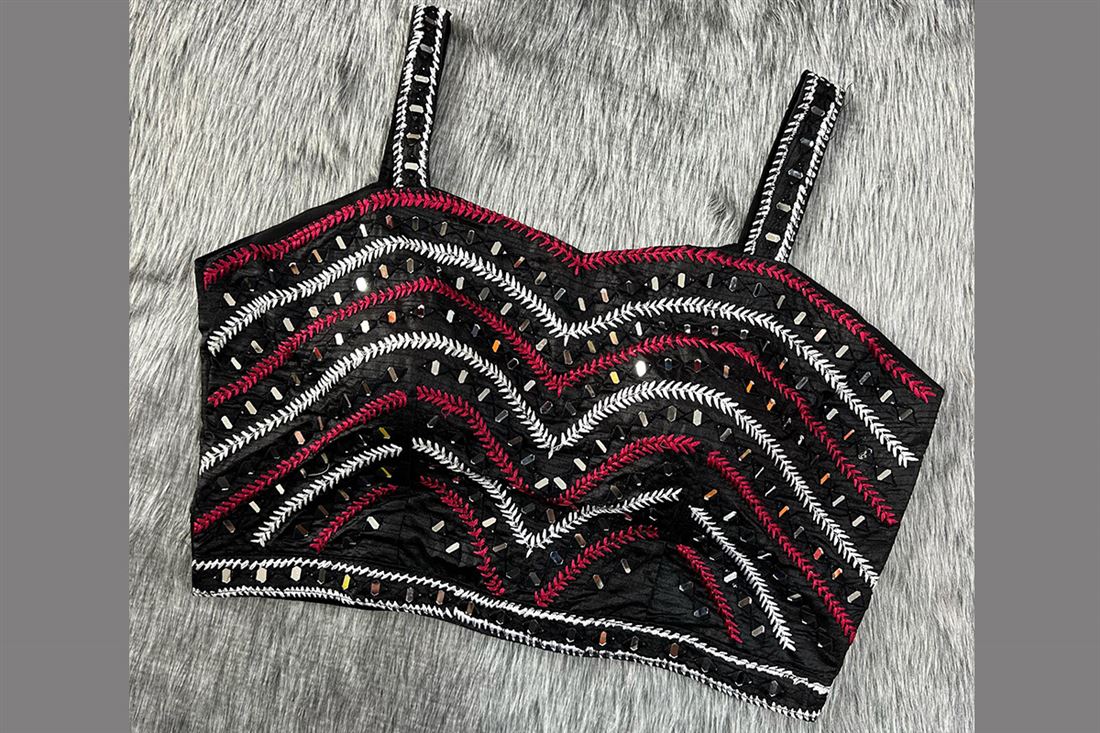 Spaghetti Strips Western Blouse gives awesome look. Back open hooks.SIZE:- 38 inch Fix Size