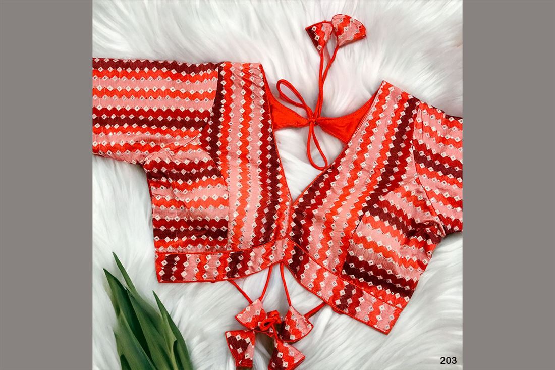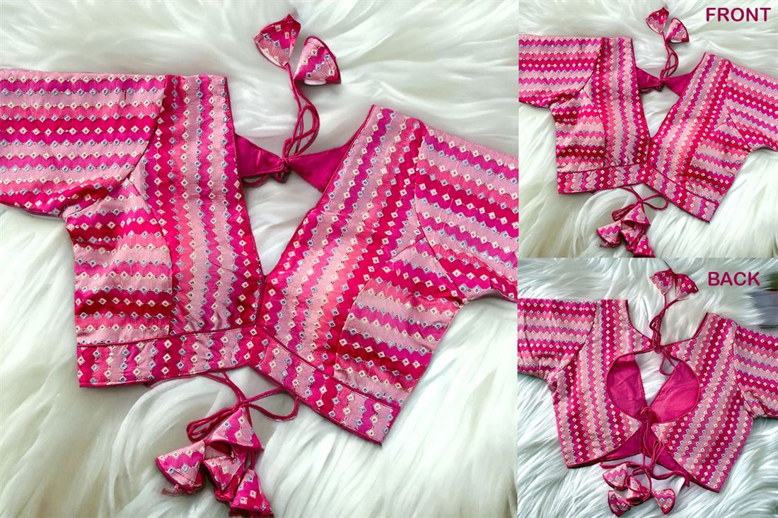 To Rock New SABYASACHI STYLE Blouse in Bollywood Style with superb Back pattern , Back Open Doori (3/4th sleeves). SIZE:- Free Size 38 Inch upto 40 Inch.