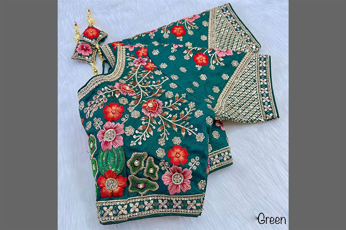 Beautiful Work bridal design Heavy Stitching Heavy Padded Handmade Hooks With Beautiful Latkan back open Style,Plus Size 42” Ready ulter upto 44~46 Inch.
