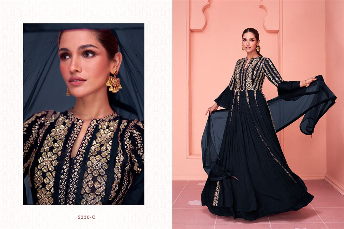 Introducing the exquisite KIARA GOLD FREE SIZE STITCH COLLECTION, a true portrayal of elegance and style. This designer gown is meticulously crafted using real georgette fabric, ensuring a luxurious and comfortable wear. The front and back of the gown are beautifully embroidered, adding a touch of sophistication to the overall look. Perfect for various occasions, this piece showcases the expertise of our skilled artisans and reflects the timeless beauty that our brand is renowned for.. Additional 12% GST Applicable.