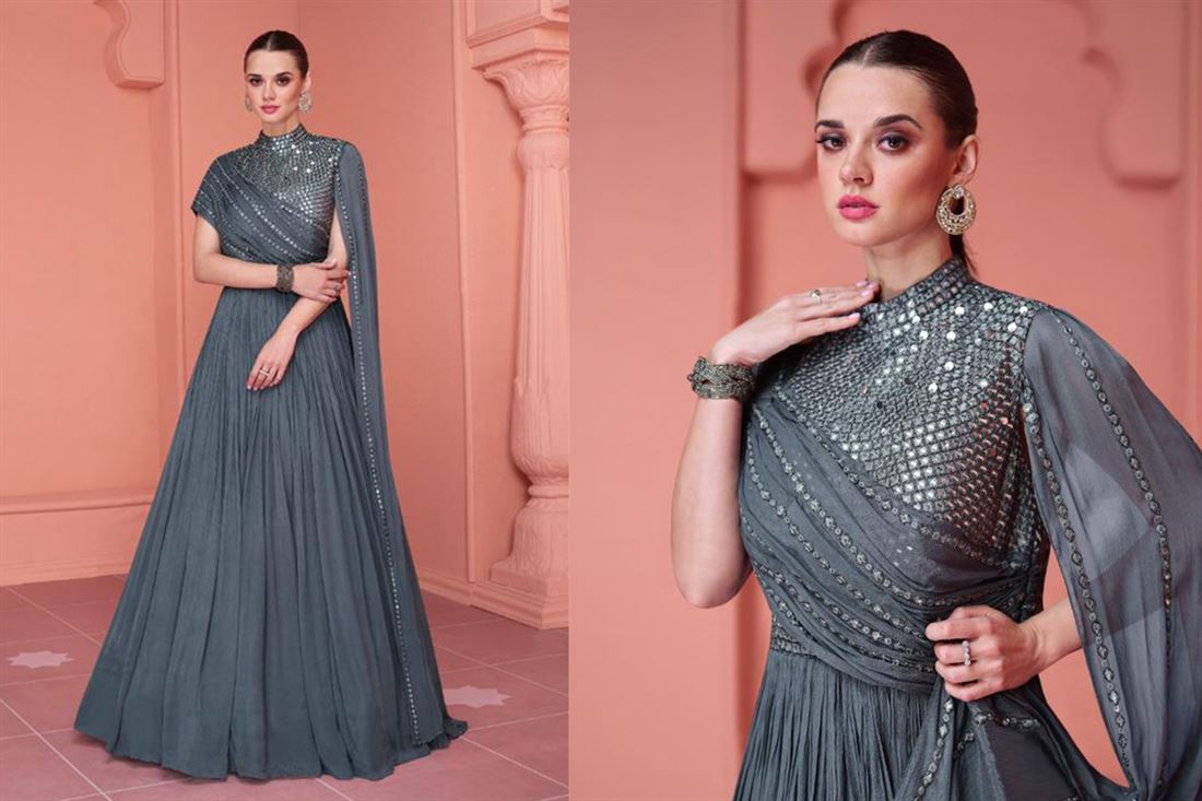 Exclusive KIARAA DESIGNER FREE SIZE STITCHED GOWN Collections.Additional 12% GST Applicable.