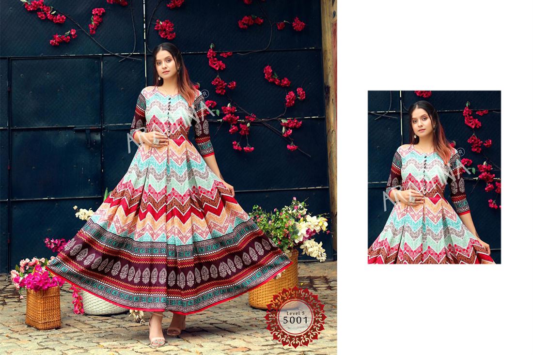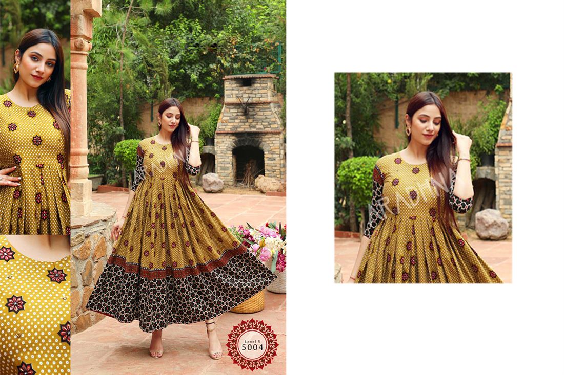 Exclusive LEVEL-5 Designer Readymade Long Gown Collections. Size Available:- L. Additional 5% GST Applicable.