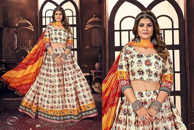 Fashion that express your character. Fashion that states your purpose of existence. Kekee presents yet another enchanting collection of stunning designs and aesthetic work this ceremonial season to flourish your shrungar with this magnificent range of NAVRATRI NIGHTS READYMADE Lehenga Collection. Size : M-(38") With 2" Margin Inside. 12% GST EXTRA.