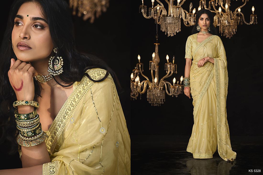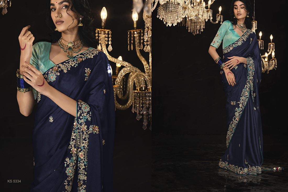 Elevate your ethnic wardrobe with our stunning KAJAL VOL-14 Sarees. Made from pure fancy fabric with a heavy work border, these sarees feature intricate embellishments such as sequin, stone, embroidery, zarkan, and fancy tassels on the pallu. The accompanying blouse is crafted from fancy pure fabric with heavy work, completing the elegant and luxurious look. Additional 5% GST Applicable.