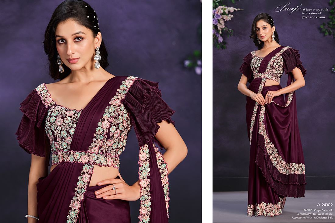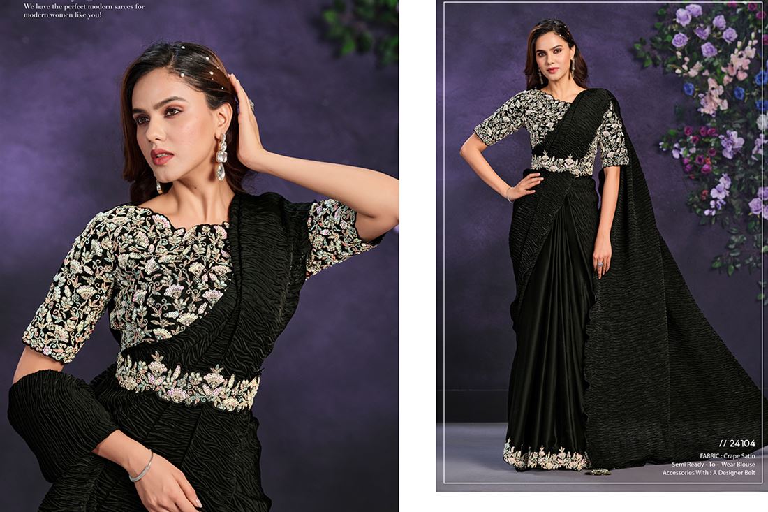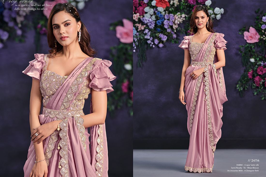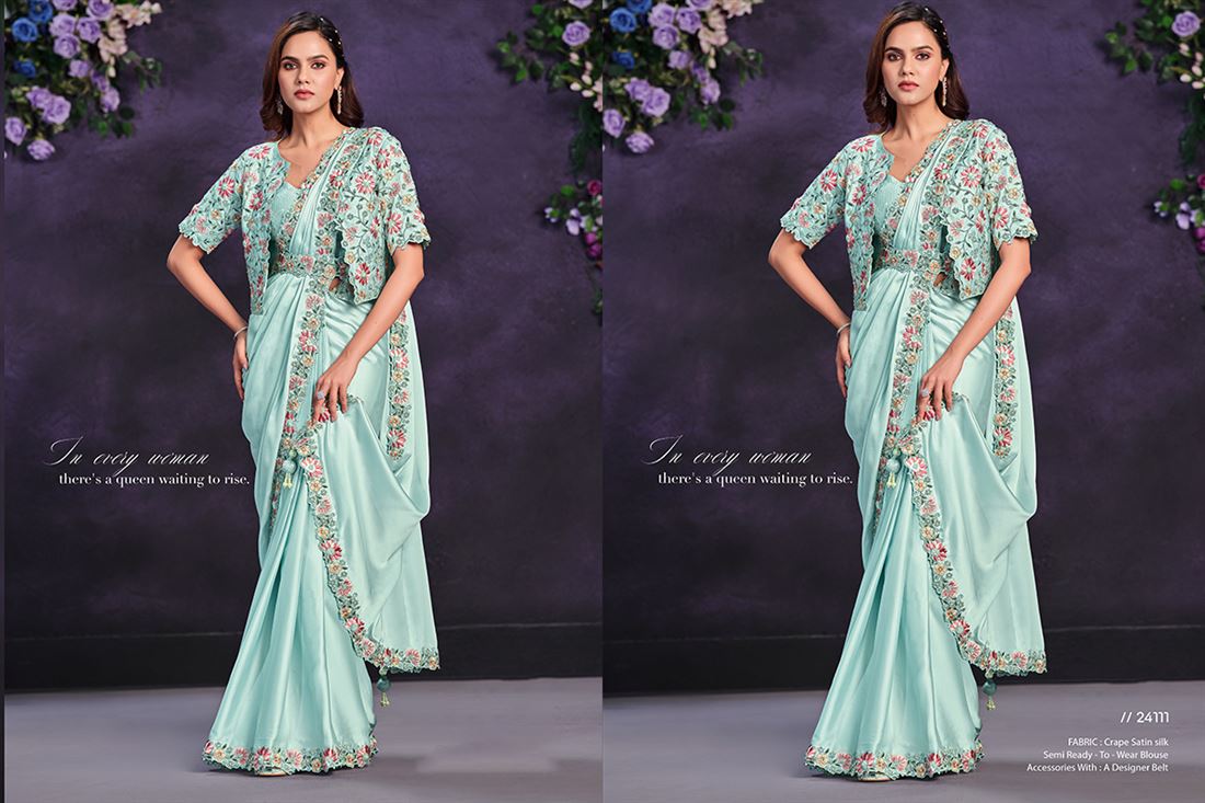 | Fabric | Crepe Satin Silk, Pure Crepe Georgette, Satin Silk, Crepe Satin |