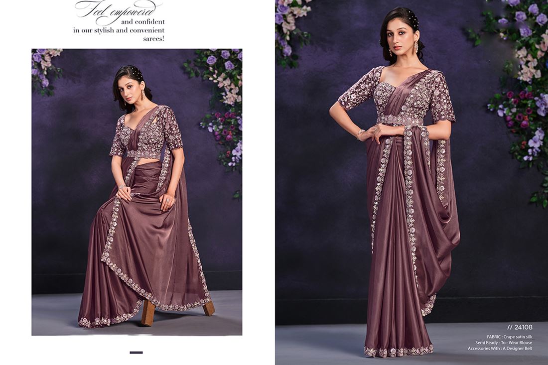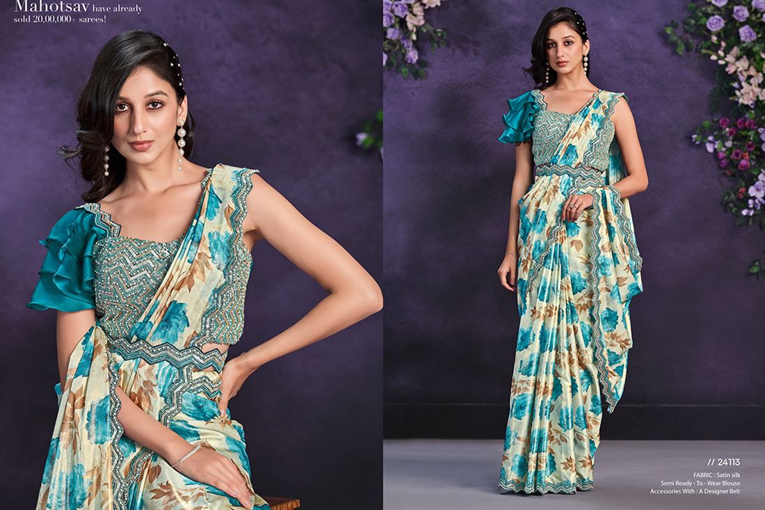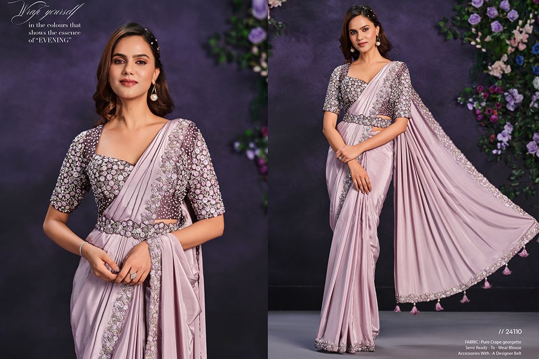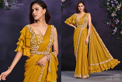 Fashion that express your character. Fashion that states your purpose of existence. Kekee presents yet another enchanting collection of stunning designs and aesthetic work this ceremonial season to flourish your shrungar with this magnificent range of RIONA ONE MINUTES SAREES WITH READYMADE BLOUSE. Additional 5% GST Applicable.