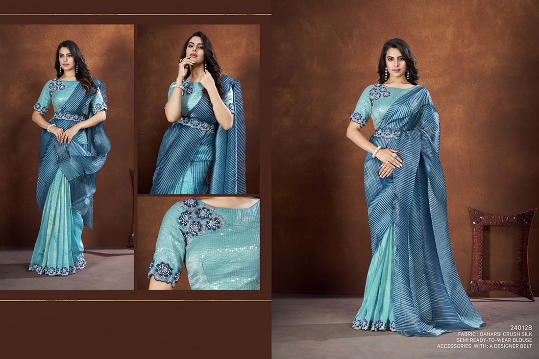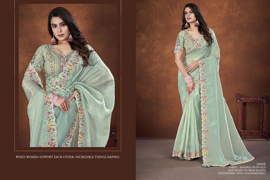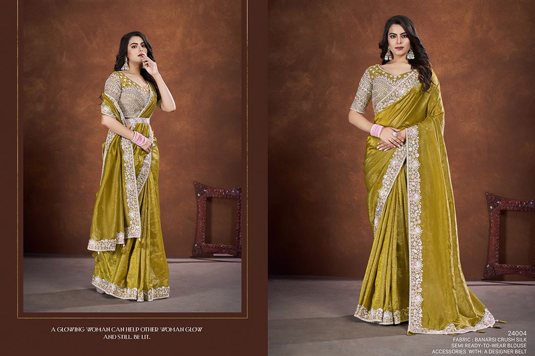 | Fabric | Banarsi Crush Silk, Crepe Satin Silk |