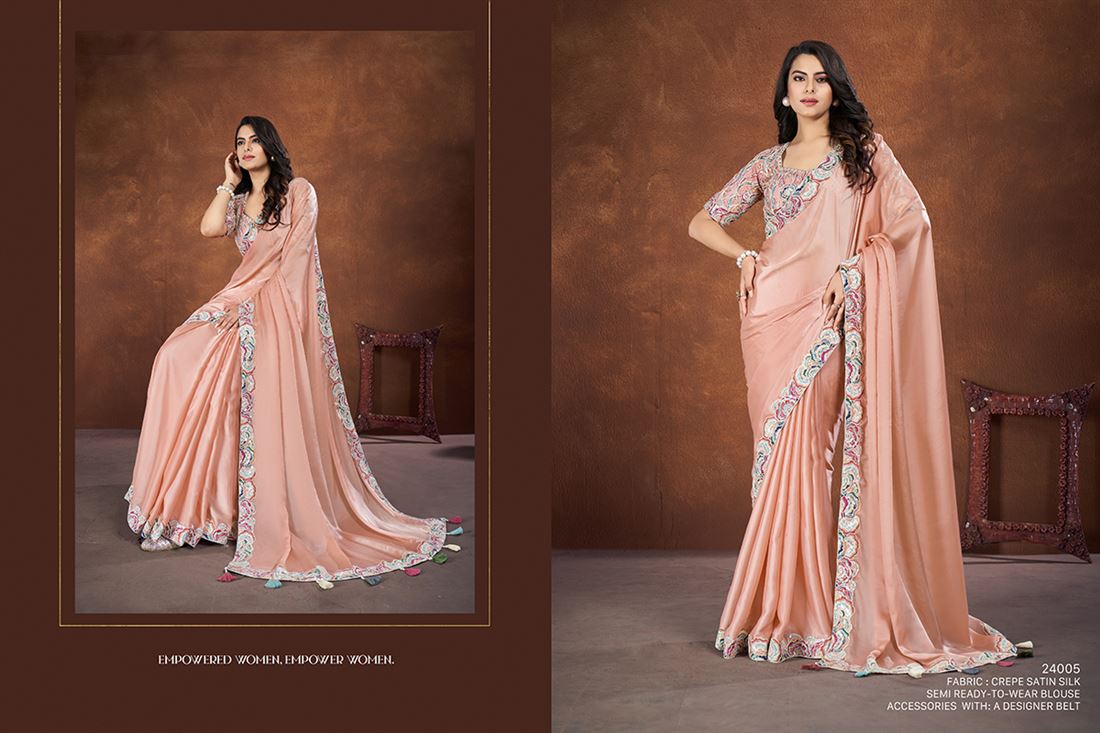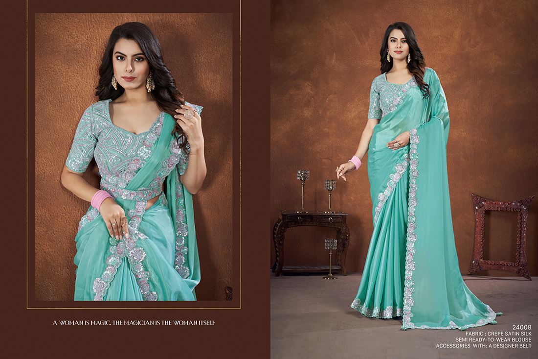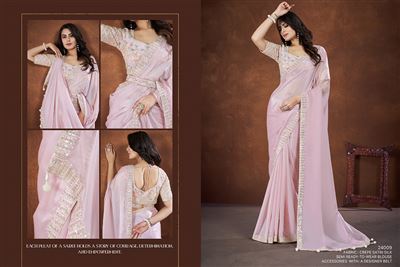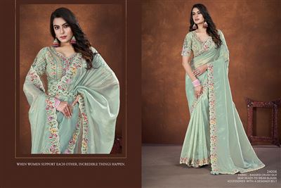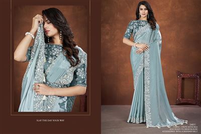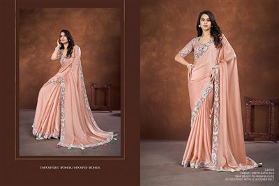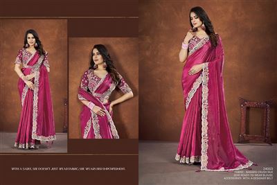 Elevate your style with our exquisite SAHA SAKI Designer Saree, perfect for weddings and special occasions. Crafted from premium satin chiffon silk, this saree features intricate fancy embroidery that exudes elegance. Complete your look with the heavy blouse that pairs beautifully with this stunning piece. Additional 5% GST Applicable.