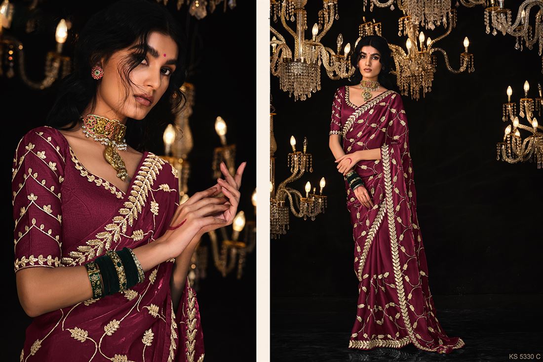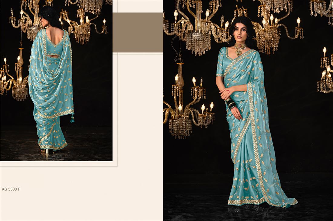 Elevate your ethnic wardrobe with our stunning KAJAL HITS COLOURS Sarees. Made from pure fancy fabric with a heavy work border, these sarees feature intricate embellishments such as sequin, stone, embroidery, zarkan, and fancy tassels on the pallu. The accompanying blouse is crafted from fancy pure fabric with heavy work, completing the elegant and luxurious look. Additional 5% GST Applicable.