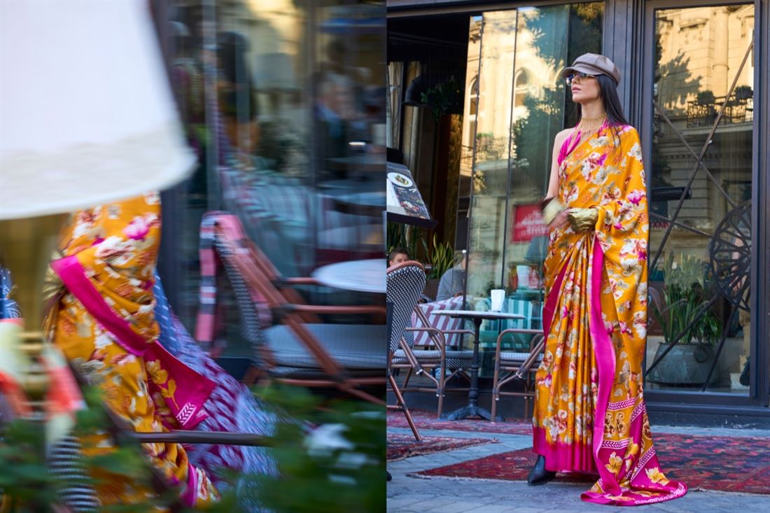 Fashion that express your character. Fashion that states your purpose of existence. Kekee presents yet another enchanting collection of stunning designs and aesthetic work this ceremonial season to flourish your shrungar with this magnificent range of KOBE SATIN CREPE PRINTED SAREES. Additional 5% GST Applicable.
