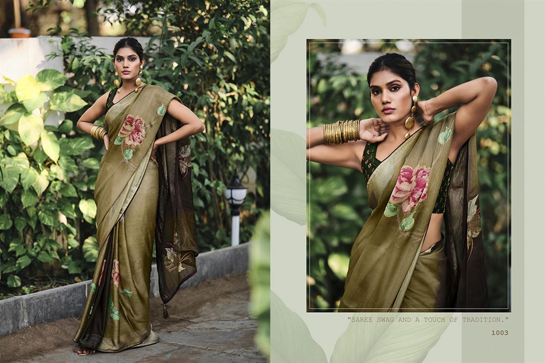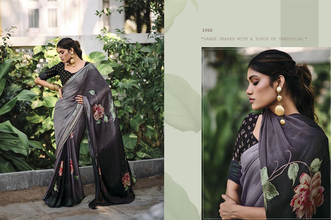 Introducing our exquisite collection of VALISHKA VOL-6 Sarees, crafted with elegance and grace to accentuate your beauty on any occasion. Made from premium quality crepe silk, these sarees offer a luxurious drape and a soft touch against your skin. Adorned with intricate embroidery and shimmering Swarovski crystals, they effortlessly combine tradition with modernity. Complete with a tastefully designed blouse, these sarees are perfect for parties, weddings, or any special event where you want to make a lasting impression. Embrace femininity in these stunning Rojan Sarees that celebrate the timeless beauty of Indian culture. Additional 5% GST Applicable.