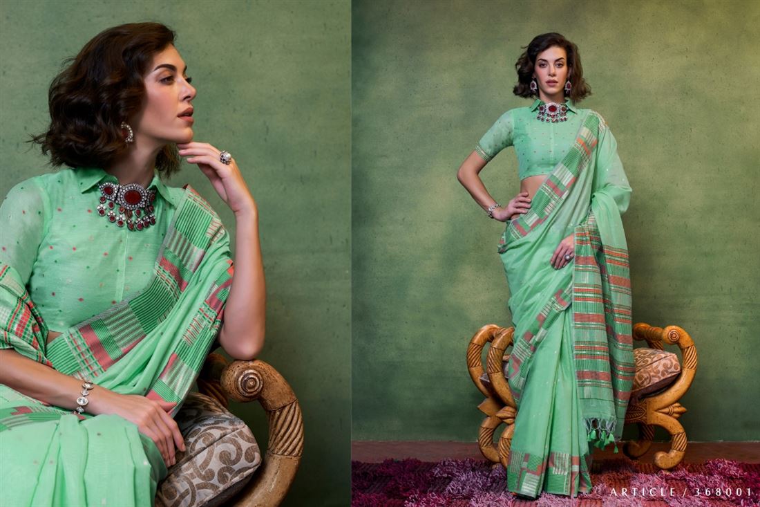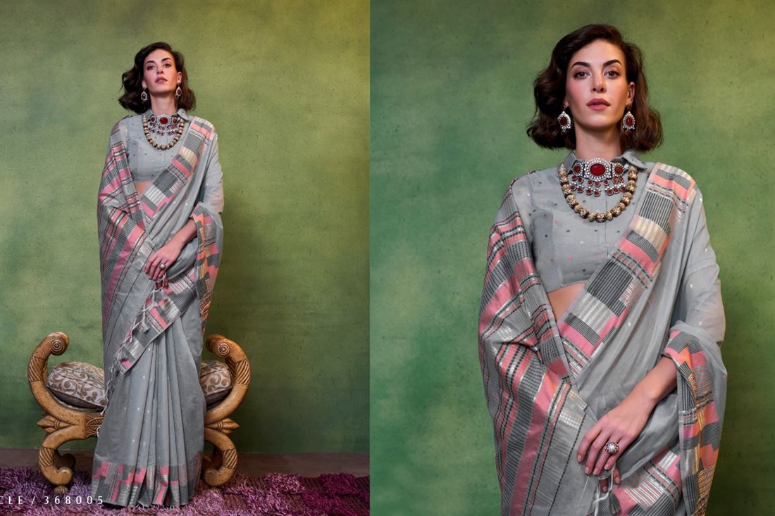 | Fabric | MAL SPUN COTTON WITH CONTEMPORARY HANDWOVEN SAREES |